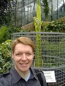 Stuart Meeson also has a very keen interest in amateur horticulture.[19] He is a member of many UK based horticultural societies and exhibits regularly at their horticultural shows. He was awarded the RHS Banksian Medal at the Dogmersfield, Winchfield and Crookham Village Horticultural Show 2010.[20] In 2011 he was awarded the Ernie Self Novice Trophy[21] at the Orchid Society of Great Britain (OSGB) Autumn Show. Later in 2014 he was awarded the RHS Banksian Medal at the OSGB Spring Show[22] and a Certificate of Cultural Commendation for orchid Epipactis gigantea 'Trefor' by the RHS Orchid Committee in June 2015.[23] At the 25th Anniversary Show he was awarded an RHS Gold medal and Best Flower Box at RHS Hampton Court Palace Flower Show 2015.[24] In 2017 a Certificate of Cultural Commendation for orchid Masdevallia mendozae 'Mullus' was awarded by the RHS Orchid Committee in March 2017.[25] At the inaugural RHS Chatsworth Flower Show (2017) he was awarded an RHS Silver Floral medal for a display of orchids in the Floral Marquee.[26][27] In April 2018 Stuart was awarded Best Hybrid Orchid at the RHS London Orchid Show for Pleione Tongariro.[28] The Guinness World Record for the most blooms on an orchid plant (sympodial) is 1,684 and was achieved by Stuart Meeson (UK), with his Epipactis gigantea 'Trefor', in Fleet, Hampshire, UK, as verified on 9 June 2018.[29][30]