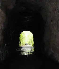 Stumphouse Mountain Tunnel in Oconee County, South Carolina is an incomplete railroad tunnel for the Blue Ridge Railroad of South Carolina in Sumter National Forest.[2][3] The tunnel, along with nearby Issaqueena Falls, are now a Walhalla city park.
