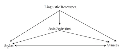 In this model of linguistic variation, stances are an important middle step between linguistic variables and a style or characteristic social group.
