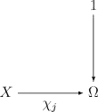 - For each monomorphism j: U → X there is a unique morphism χ j: X → Ω such that the following commutative diagram