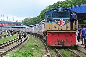 Suborno Express (Train no. 701/702) is an intercity train of Bangladesh Railway which runs between Dhaka (capital of Bangladesh) and Chittagong. Suborno Express has been considered one of the prestigious trains since it is considered the first luxurious non-stop train of the country.[1] The train connects capital Dhaka with Port City Chittagong of Bangladesh.