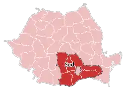 Sud - Muntenia (South - Muntenia) is a development region in Romania. As other development regions, it does not have any administrative powers, its main function being to co-ordinate regional development projects and manage funds from the European Union. It is located entirely in the historic region of Muntenia, with its Development Agency HQ in Călărași.