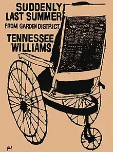 Suddenly Last Summer is a one-act play by Tennessee Williams, written in New York in 1957.[1] It opened off Broadway on  January 7, 1958, as part of a double bill with another of Williams' one-acts, Something Unspoken (written in London in 1951).[2]: 52 The presentation of the two plays was given the overall title Garden District, but Suddenly Last Summer is now more often performed alone.[3] Williams said he thought the play "perhaps the most poetic" he had written,[2]: 86 and Harold Bloom ranks it among the best examples of the playwright's lyricism.[4]