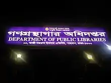 The Sufia Kamal National Public Library (Bengali: সুফিয়া কামাল জাতীয় গণগ্রন্থাগার) of Bangladesh is the largest public library in Bangladesh and houses the central administration of the Department of Public Libraries, under the Ministry of Cultural Affairs. The library was previously named as "Central Public Library" between 2004 and 2010.[1] The library is located in Dhaka's Shahbag neighbourhood.