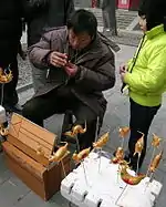 Sugar people (糖人) is a traditional Chinese form of folk art using hot, liquid sugar to create three-dimensional figures.[1][2]