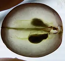 Sugars in wine are at the heart of what makes winemaking possible. During the process of fermentation, sugars from wine grapes are broken down and converted by yeast into alcohol (ethanol) and carbon dioxide. Grapes accumulate sugars as they grow on the grapevine through the translocation of sucrose molecules that are produced by photosynthesis from the leaves. During ripening the sucrose molecules are hydrolyzed (separated) by the enzyme invertase into glucose and fructose. By the time of harvest, between 15 and 25% of the grape will be composed of simple sugars. Both glucose and fructose are six-carbon sugars but three-, four-, five- and seven-carbon sugars are also present in the grape. Not all sugars are fermentable, with sugars like the five-carbon arabinose, rhamnose and xylose still being present in the wine after fermentation. Very high sugar content will effectively kill the yeast once a certain (high) alcohol content is reached. For these reasons, no wine is ever fermented completely "dry" (meaning without any residual sugar). Sugar's role in dictating the final alcohol content of the wine (and such its resulting body and "mouth-feel") sometimes encourages winemakers to add sugar (usually sucrose) during winemaking in a process known as chaptalization solely in order to boost the alcohol content – chaptalization does not increase the sweetness of a wine.[1]