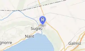 Sugiez railway station (German: Bahnhof Sugiez, French: Gare de Sugiez) is a railway station in the municipality of Mont-Vully, in the Swiss canton of Bern. It is an intermediate stop on the standard gauge Fribourg–Ins line of Transports publics Fribourgeois.[1]