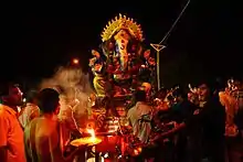 Sukhakarta Dukhaharta (literally "harbinger of happiness and dispeller of distress",[1] Marathi: सुखकर्ता दु:खहर्ता, sukhakartā duḥkhaharta), also spelled as Sukhkarta Dukhharta, is a popular Marathi arati song or bhajan (devotional song) dedicated to the Hindu god Ganesha, composed by the saint Samarth Ramdas (1608 - 1682 CE).[2][3] It is included in the "most standard and almost universal" arati songs sung at the start of Puja (worship rituals) of Ganesha in Maharashtra, especially in his festival Ganesh Chaturthi as well as in Ganesha temples in the region.[1][3][4]