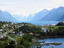 ![]() View of Langevåg (looking towards the town of Ålesund, administrative center of the neighbouring municipality) | |
