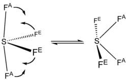 The 19F NMR spectrum of SF4 reveals only one signal, which indicates that the axial and equatorial F atom positions rapidly interconvert via pseudorotation.[4]