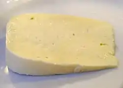 Sulguni (Georgian: სულგუნი, სულუგუნი sulguni, suluguni; Svan: სჷლგინ, ლჷჯმარე selgin, lejmare; Mingrelian: სელეგინ selegin) is a brined Georgian cheese from the Svaneti and Samegrelo regions. It has a sour, moderately salty flavor, a dimpled texture, and an elastic consistency; these attributes are the result of the process used, as is the source of its nickname "pickle cheese". Its color ranges from white to pale yellow. Sulguni is often deep-fried, which masks its odor. It is often served in wedges.