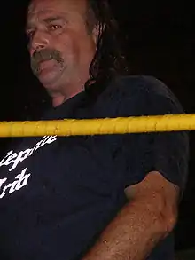 After Martel returned from his injury, he was placed in a storyline in which he blinded Jake Roberts by spraying him in the face with cologne on the Brother Love Show.[58] Martel and Santana faced each other on the November 11 episode of Wrestling Challenge, and Roberts interfered. Unable to see clearly, he accidentally attacked Santana but vowed revenge against Martel.[59] Bad News Brown left the WWF after SummerSlam, citing broken promises as his reason.[60]