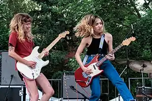 Summer Cannibals is a rock band from Portland, Oregon featuring lead singer and guitarist Jessica Boudreaux, drummer Devon Shirley (formerly of the bands The Photo Atlas and Red Orange Yellow),[1] guitarist Cassi Blum and bassist Ethan Butman.[2] Their debut album, No Makeup, was released on New Moss Records on August 6, 2013. Their follow up sophomore album, Show Us Your Mind, was produced, recorded, and mixed by Larry Crane and released on New Moss Records on March 3, 2015. The album received favorable reviews from critics such as Entertainment Weekly, which stated that the album featured “songs that refine the fuzzy garage-pop of its debut into something sharper, tighter, and much more difficult to shake off.”[3]