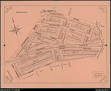 Summer Hill's largest mansion, Carleton (now the Grosvenor Hospital's main building), was built in the early 1880s on Liverpool Road for Charles Carleton Skarrat. The suburb boomed with the opening of the railway station in 1879, and was followed by subdivision of much of the surrounding area. Between 1880 and 1910, the area became an upper-class suburb, and was a popular choice for professionals in banking and insurance who worked in the city.[6] Subdivision of gardens for housing continued in the 1920s and 1930s, and socioeconomically the suburb changed as some of the wealthier inhabitants moved to the North Shore. Demolition of most of the surviving mansions in the 1970s allowed erection of home units, especially within walking distance of the railway station.[6]