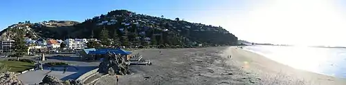 Shag Rock, or Rapanui, is another large volcanic outcrop at the western end of the beach and sits at the mouth of the Estuary formed by the Avon and Heathcote rivers.[14] This landmark was shattered by the Christchurch earthquakes in 2011, which reduced the iconic rock to a pile of boulders.[14]
