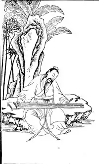Ji Kang's polymathic interests ranged from xian "transcendence; immortality" techniques to music theory. His essay Yangsheng lun "On Nourishing Life" contends that one can achieve longevity through Daoist breathing exercises, diets (e.g., bigu), and drugs (Cold-Food Powder). Drug use was widespread among the literati in early medieval China, and Ji Kang was "reputed to have been a connoisseur in this field".[2] Ji's writings on music include the famous Qin fu "A Rhapsody on the Qin" zither, Shengwu aile lun "Essay on the Absence of Sorrow or Joy in Music", and a number of solo pieces for qin.