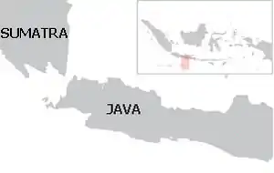 ![]() Location of the action on 25 January 1794. The Sunda Strait is the channel between Java and Sumatra. | |||||||