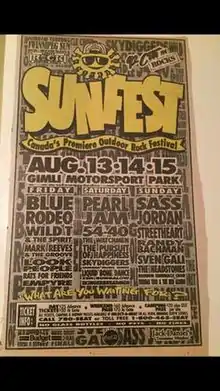Sunfest was an annual rock festival based in Gimli, Manitoba, Canada, at Gimli Motorsports Park. The festival was held over a three or four-day period every August from 1990 to 1996 and featured predominantly Canadian rock bands.