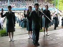 The assemblies of junior students are held at the Grand Stage at Senior Block, instead of the Atrium. However, Form 3 students that reside at Junior Block, are required to gather for Monday assemblies, not Tuesday assemblies.