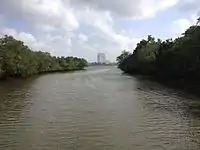 Among the many birds that can be spotted feeding on the diverse fauna variety of worms and molluscs, are Eurasian whimbrel, common greenshank, common redshank, Mongolian plover, curlew sandpiper, marsh sandpiper and Pacific golden plover, yellow bittern and cinnamon bittern. Lucky visitors to the reserve may be able to spot the resident family of smooth otters, as well as the rare lesser whistling-duck, and the rare milky stork.[5] The reserve forms part of the Kranji-Mandai Important Bird Area (IBA), identified as such by BirdLife International because it supports Chinese egrets, greater spotted eagles and greater crested terns.[6] Atlas moth, the largest species of moth in Southeast Asia can be found in the back mangrove.