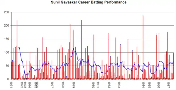 - Gavaskar was the first Test cricket player to make over 10,000 runs.[19]