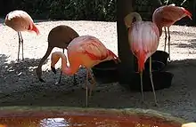 In 2016, Sunken Gardens acquired a new young flock of 20 flamingos from the San Antonio Zoo.[5][6] They joined elderly flamingo residents, George and Lucy, the two remaining Chilean flamingos from the original 17 bird flock that have been on exhibit since 1956. The new flamingos were purchased with funds raised by a nonprofit group, Flamingos Forever, composed of volunteers.[7][8] Additionally, the city purchased a $30,000 nighttime enclosure for the new flock. Flamingos Forever changed their name to Sunken Gardens Forever, after the acquisition of the new flock, and St. Petersburg Mayor Rick Kriseman named May "Sunken Gardens Forever Appreciation Month" in St. Petersburg, FL, in honor of their fundraising efforts.[9]