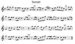 "Sunset", also known as the "Retreat Call", is a bugle call played in United Kingdom and British Commonwealth countries to signal the end of the official military day.[1] In common with all bugle calls, it consists only of notes from a single overtone series. This allows it to be playable on a bugle or equivalently on a trumpet without moving the valves.