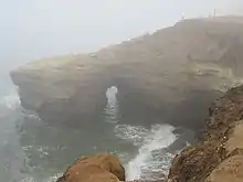 Sunset Cliffs Natural Park is a 68-acre (28 ha) city park adjacent to the Pacific Ocean on the western edge of Point Loma.[8] It includes the entire strip of land immediately adjacent to the ocean, between the water and Sunset Cliffs Boulevard, as well as a larger area of undeveloped park and nature preserve on the south side of the area.[9] It was dedicated in 1983.[10] It stretches from Adair Street to Ladera Street. This coastal strip is connected to the 640-acre (260 ha) Point Loma Reserve.[8] The park includes carved coastal bluffs, arches and sea caves. From the cliffs, the California gray whale can be seen migrating annually from the Bering Sea to Baja California. The park is a popular place to view the sunset, hence the name.