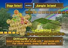 Challenge Mode consists of 300 levels separated into sections based on difficulty level. Beginner difficulty has 40 stages, Advanced difficulty has 70 stages, Expert difficulty has 100 stages, and Master difficulty has 20 stages. Each difficulty level also has 20 extra stages (with the exception of Master difficulty, which only has 10). There's also an exclusive mode known as Ultimate, which tests the player's skill through every stage through the Beginner, Advanced, Expert and Master difficulties (if the player goes through the stages without continuing). Players are given three lives and six continues with which to complete every level in their chosen difficulty. This mode can also be played with up to four players.[7] The game also features a multiplayer mode known as Competition Mode, which allows up to four players to compete against each other on any of the maps unlocked in Challenge Mode. The same rules from the single-player Story Mode apply. The number of bananas a player collects determines which player is victorious.[8]