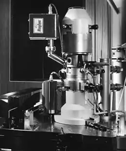 The "Electrocomposeur" was an electron-beam lithography machine (electron microscope) designed for mask writing. It was developed in the early 1970s and deployed in the mid 1970s.
