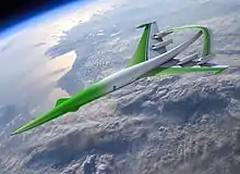 STRATOFLY MR3 is an EU research program (German Aerospace Center, ONERA and universities) with the goal of developing a cryogenic fuel 300-passenger airliner capable to fly at about 10,000 Km/h (Mach 8) above 30 km of altitude.[66][67]