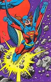 Lucy Lane later attacks Reactron, which tipped off readers that Superwoman was not Kryptonian, since the villain's Gold Kryptonite power source had no effect on her.[28] Supergirl unmasks Superwoman,[29] and accidentally kills her by rupturing the containment field of her suit, causing Lucy's body to contort and explode.[30]