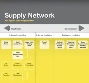 Businesses are often part of a larger network of organisations, a supply-chain network can be used to highlight interactions between organisations; they can also be used to show the flow of information and materials across organisations.[2] Supply-chain networks are now more global than ever and are typically structured with five key areas: external suppliers, production centres, distribution centres (DCs), demand zones, and transportation assets[3]
