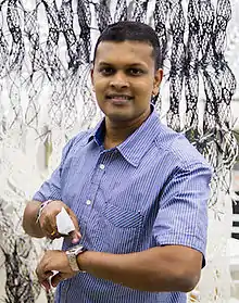 Suranga Nanayakkara (born 1981) is a Sri Lankan born computer scientist and inventor.[1] As of 2021, he was the director of Augmented Human Lab and associate professor at Auckland Bioengineering Institute, University of Auckland. Before moving to Auckland, he was an assistant professor at Singapore University of Technology and Design. He is best known for his work on FingerReader[2][3][4][5] and Haptic Chair.[6] His research interests include Wearable Computing, Assistive Technology, Ubiquitous computing, AI, Collective intelligence and Robotics. MIT Technology Review honored Nanayakkara as one of the Innovators Under 35 for Asia Pacific Region 2014.[7][8]