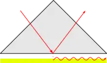 When using light to excite SP waves, there are two configurations which are well known. In the Otto configuration, the light illuminates the wall of a glass block, typically a prism, and is totally internally reflected. A thin metal film (for example gold) is positioned close enough to the prism wall so that an evanescent wave can interact with the plasma waves on the surface and hence excite the plasmons.[5]
