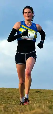 At the 2011 London Marathon she improved her personal best to 2:34:13 hours.[3] This gained her a place on the British team for the 2011 World Championships Marathon and she was the first Briton home in 24th place after 2:35:57 hours.[7] She managed third place at the end of year San Silvestre Vallecana in Spain, being the first European to finish.[8]