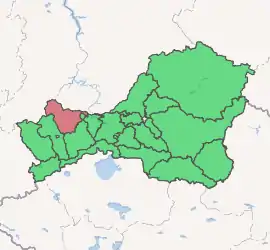 Sut-Kholsky District (Russian: Сут-Хо́льский кожуун; Tuvan: Сүт-Хөл кожуун) is an administrative[1] and municipal[2] district (raion, or kozhuun), one of the seventeen in the Tuva Republic, Russia. It is located in the west of the republic. The area of the district is 6,691.25 square kilometers (2,583.51 sq mi).[2] Its administrative center is the rural locality (a selo) of Sug-Aksy.[1] Population: 8,029 (2010 Census);[3] 8,430 (2002 Census);[6] 12,038 (1989 Census).[7] The population of Sug-Aksy accounts for 39.7% of the district's total population.[3]