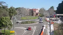The railway line was constructed in the 1880s and development followed. Residents lived in humpies or tents in the bush. Once the land was cleared, a township developed around the railway station. In 1886 there were only four permanent buildings: the railway station, the station master's residence, the railway keeper's cottage and a general store run by a man called Bramley. The post office opened on 1 September 1886 and a school began classes in 1887. In 1906, the shire of Sutherland was proclaimed and the name Sutherland was officially declared. The first meetings were held in the shire clerk's home and the Council Chambers were built in 1915.[4] By the 1920s, steam trams operated between Cronulla and Sutherland.
