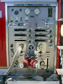Sutphen produces all types of fire related vehicles on their own chassis including the usual engines, ladders, and rescues but also provides bodies for commercial chassis applications. The company produces mid-mount aerials as either a tower ladder platform (with a bucket/basket) or in a ladder tower form (no bucket) plus industrial application aerials today. On April 21, 2016 at FDIC International the company debuted its first ever rear-mount aerial with the Sutphen SLR 75. The following year Sutphen previewed a 108-foot model. Previously, Sutphen had produced tillers in the 1990s including a unique tiller-tower concept where the bucket of the tiller aerial also acted as the tillerman's cab. The concept never made it to production.[1] All Sutphen aerials are made of Aluminum alloys and fastened with aircraft-type Huck Bolts.[2] The hydraulics are custom designed and built by the company for their applications.[3]