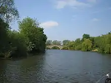 Sutton Bridge, Oxfordshire is a road bridge across the River Thames near the village of Sutton Courtenay, Oxfordshire, England. It is a stone structure built in 1807 with three arches over the main river and two smaller ones across the flood plain. An extension was built in 1809 across the Culham Cut, just below Culham Lock. It was originally a toll bridge and replaced an earlier multi-arch bridge over the original weir and a ferry at this site.[2] It is a Grade II listed building.[3]