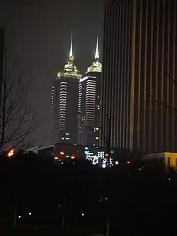 The towers bear a striking resemblance to the One Liberty Place skyscraper complex in Philadelphia, United States.