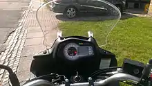 The bike's instrument cluster includes a compact analog step-motor speedometer and tachometer (both with LED illumination) and a digital LCD unit with odometer, trip meter, coolant temperature gauge, fuel gauge, LED neutral, digital clock, turn signal and high beam lights and an oil pressure warning light.