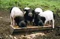 The Swabian-Hall swine (Schwäbisch-Hällische Landschwein) is a breed of domestic pig originating from Schwäbisch Hall in Baden-Württemberg, Germany. It is a large pig, white in the centre with a black head and rear and narrow grey bands at the transition from white to black skin. They have large litters averaging more than nine piglets.