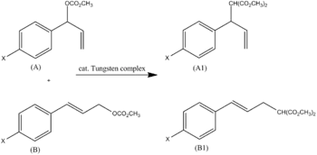 - Lehman, J.; Lloyd-Jone, G.C. (1995). "Regiocontrol and Stereoselectivity in Tungsten-Bipyridine Catalyzed Allylic Alkylation". Tetrahedron. 51 (32): 8863–8874. doi:10.1016/0040-4020(95)00481-M.