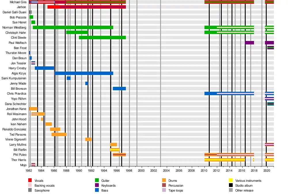 - Michael Gira – guitar, vocals (1982–1997, 2010–present)