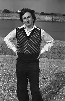 A sweater vest (known as a tank top or sleeveless sweater in the UK) is an item of knitwear that is similar to a sweater, but without sleeves, usually with a low-cut neckline. They were popular in the 20th century, particularly in the 1970s in the UK, and are again growing in popularity in this century.[2]