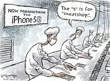 Apple Inc the world's most valuable technology multinational corporation has been accused that their contractors are forcing workers to do overtime involuntarily at sweatshop working conditions and employing underage workers in its factories. Some laborers are forced to work 24 hours at a time and others are forced to stand for their entire shift. And some workers even had to work at unsafe and hazardous condition. In December 2011, 61 workers in the Riteng Computer Accessory Co factory were injured in a gas explosion whilst trialling aluminum iPad 2 back panels. Due to the pressurized working conditions, in 2009, 18 workers who work in Foxconn factory, one of the Apple manufacturer, committed suicide after losing an iPhone prototype. Over next two years, at least 18 other Apple workers try to commit suicide. Besides, undercover Inspectors have been monitoring Pegatron factory, one of the Apple contractor in Taiwan, for five months and found Apple supplier broke 86 laws and regulations including workers are forced to work up to 70 hours per week as well as hiring more than 100,000 underage labour to work on the production lines. These sweatshop scandals strongly affected the reputation of the company.