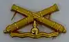 The coat of arms of the Swedish Coastal Artillery 1979–2000, the Coastal Artillery Center (Kustartillericentrum, KAC) 1995–1997 and the Swedish Amphibious Corps since 2000. Blazon: "Gules, two gunbarrels of older pattern in saltire above a flaming grenade and waves, all or".[5]