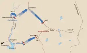 The Swedish Volunteer Corps (Swedish: Svenska frivilligkåren) during the Winter War numbered 9,640 officers and men. Sweden was officially non-belligerent during the war, so the Corps was used by Finland. The Swedish volunteers were in the front lines in the northern Salla area starting from February 28, 1940. Their losses included 33 dead, 10 missing, 50 wounded, and 130 disabled by frostbite.[1] There were also 25 aircraft that served in the Swedish Voluntary Air Force, F19. Swedish volunteers also defended Turku in an anti-aircraft battery.