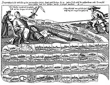 Decimation was also introduced into regiments that were known to have committed crimes, including fleeing battle.[21] The rest of the regiment was then disgraced by being ordered to perform menial tasks.[20] Violence towards women was punished with death.[20] Prostitutes were absolutely forbidden from camp[21] – especially in the German campaign, as many of them had ties to the German camp as well and divided loyalties could be problematical to Swedish operations. Dueling was forbidden.[22][14] On one occasion – when two men requested leave to duel – the king attended the duel himself and informed the combatants to fight to the death, and that he had a provost marshal on hand to execute the survivor.[20][23]